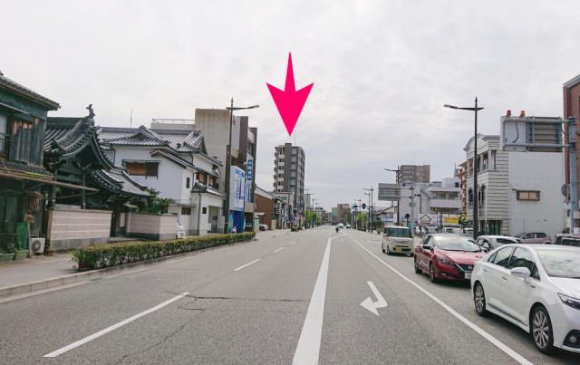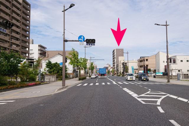 和歌山城方面から田中町交差点にお進みいただくと、右手に10階建てのビルが見えてきます。